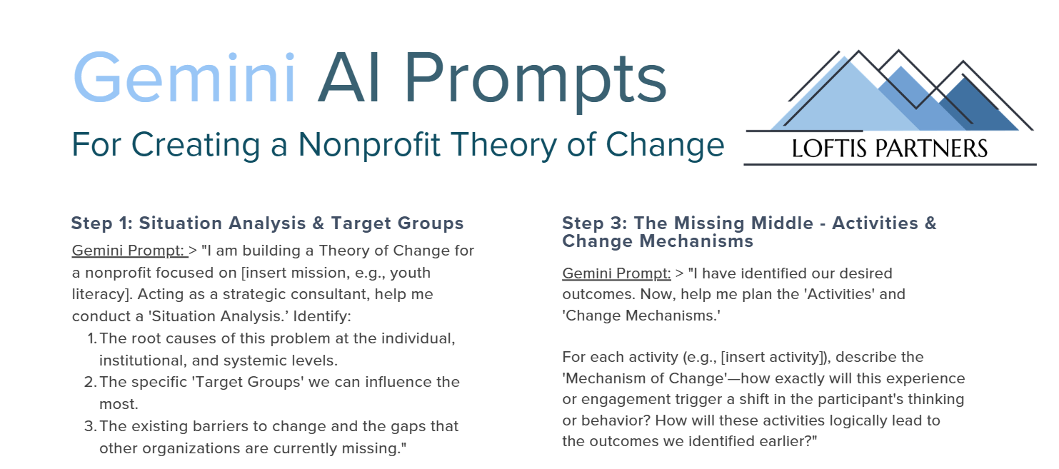 This handout provides a step-by-step roadmap for using Gemini to transform a visionary mission into a rigorous, logic-backed Theory of Change based on industry-leading frameworks.