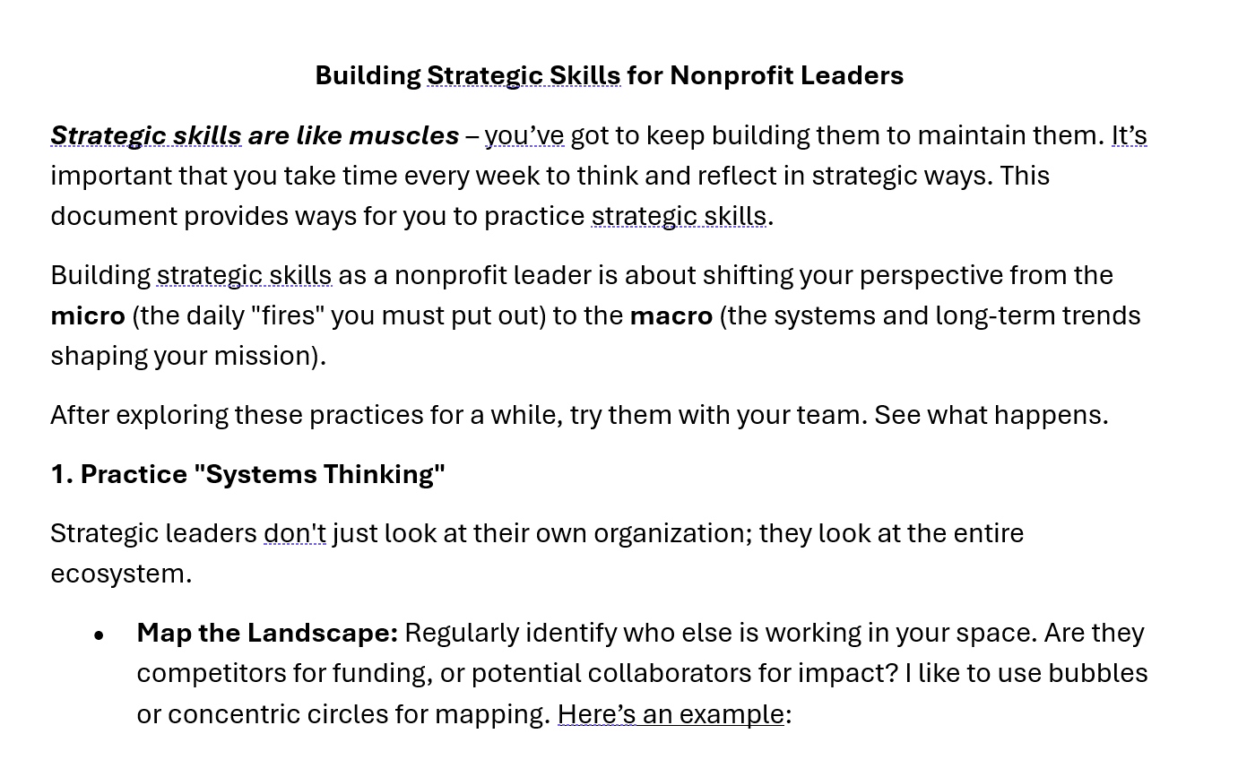 Building strategic skills as a nonprofit leader is about shifting your perspective from the micro to the macro. Here are some practices to try.